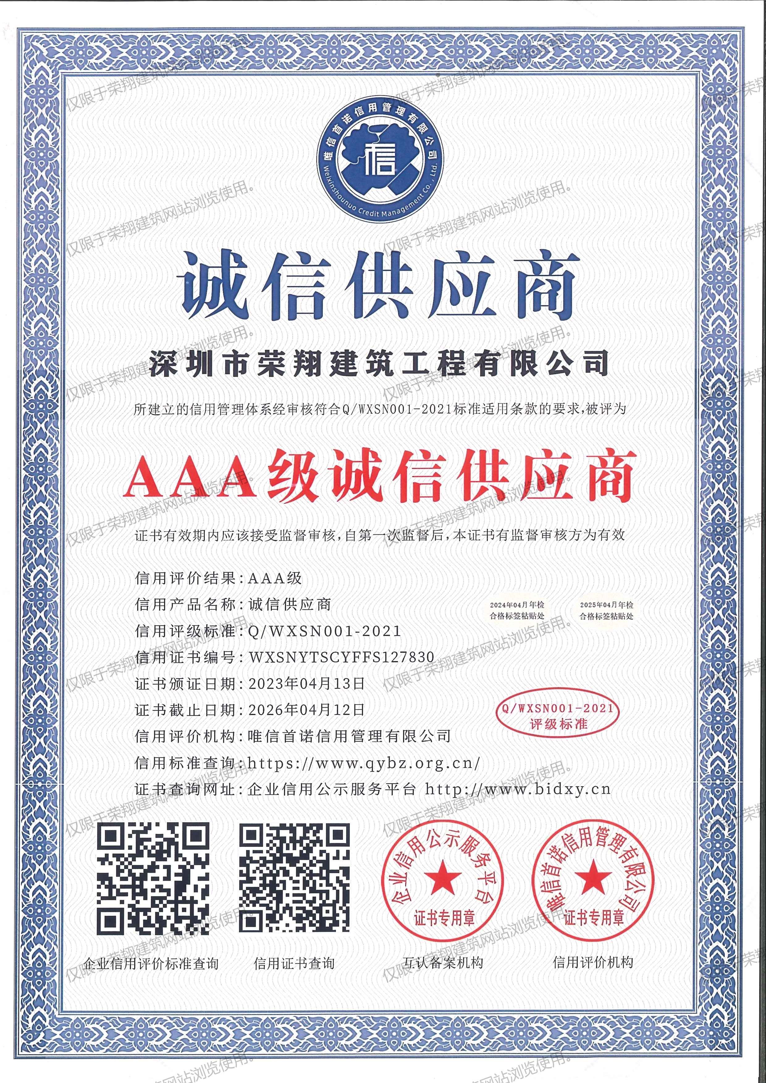 AAA级诚信供应商